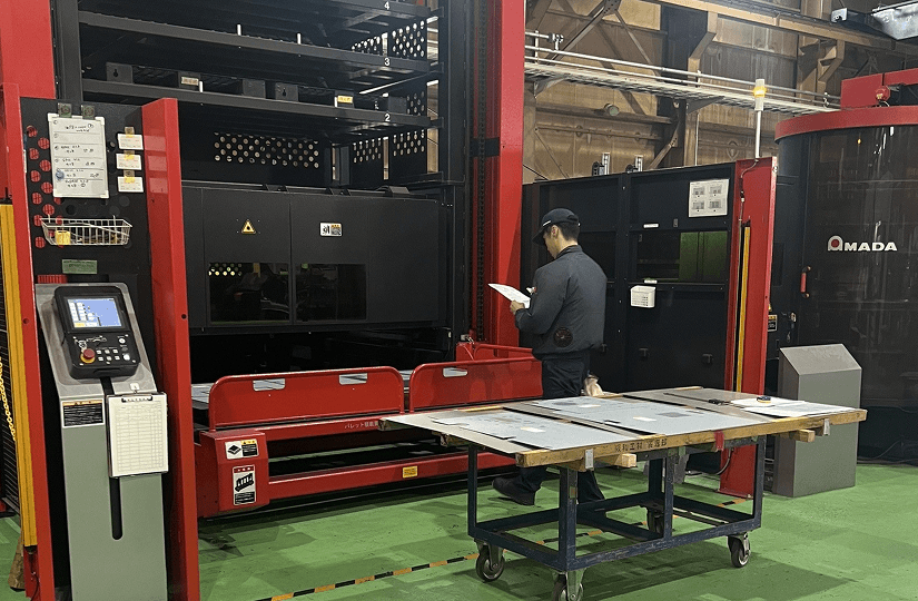 ファイバーレーザーを搭載したことにより、従来の複合機に比べ高生産・低ランニングコストで加工が可能。また、高反射材の加工も可能となり高速加工と長時間連続自動運転を実現しています。さらに、素材棚/製品・スケルトン棚の2棚仕様により、複数の素材と製品の最長16時間連続自動運転が可能です。